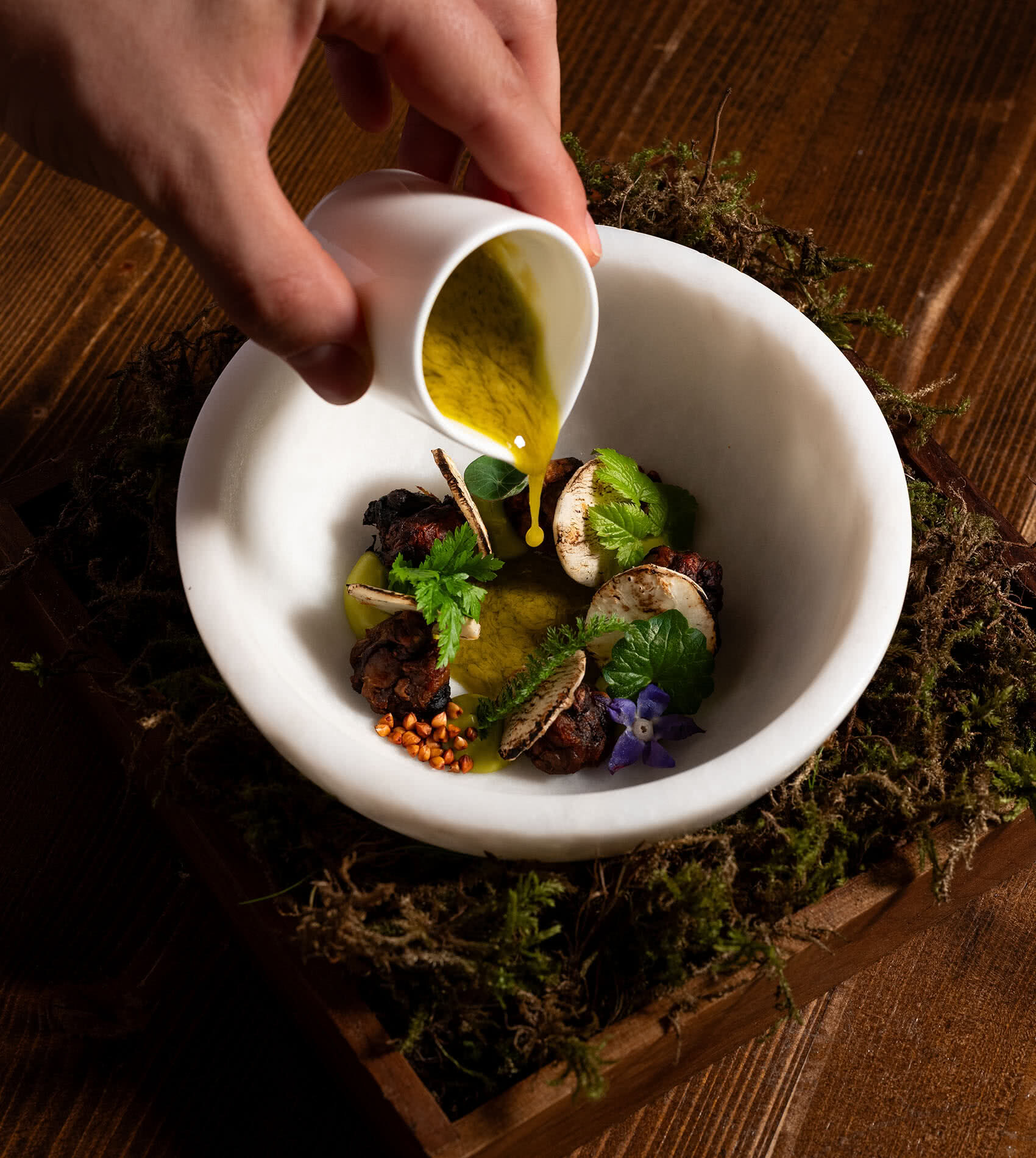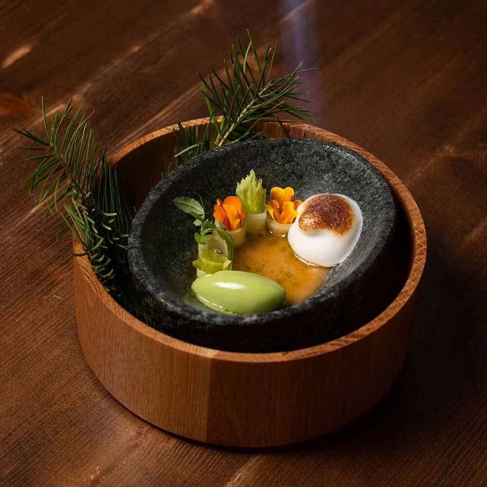 Lokal und saisonal sind die wichtigsten Kriterien, auf die wir achten. Alles, was bei uns auf den Tisch kommt, stammt aus der Region und wurde nachhaltig angebaut und geerntet. Wenn wir etwas außerhalb der Saison anbieten, dann wurde es für den heutigen Genuss schon im letzten Jahr eingelegt oder konserviert. Unser nachhaltiges Versprechen endet nicht am Rand unserer Teller, sondern zieht sich durch die kleinsten Details unseres Restaurants – vom Low-Waste-Ansatz bis zur nachhaltigen Ausbildung und Beschäftigung unserer Mitarbeitenden.