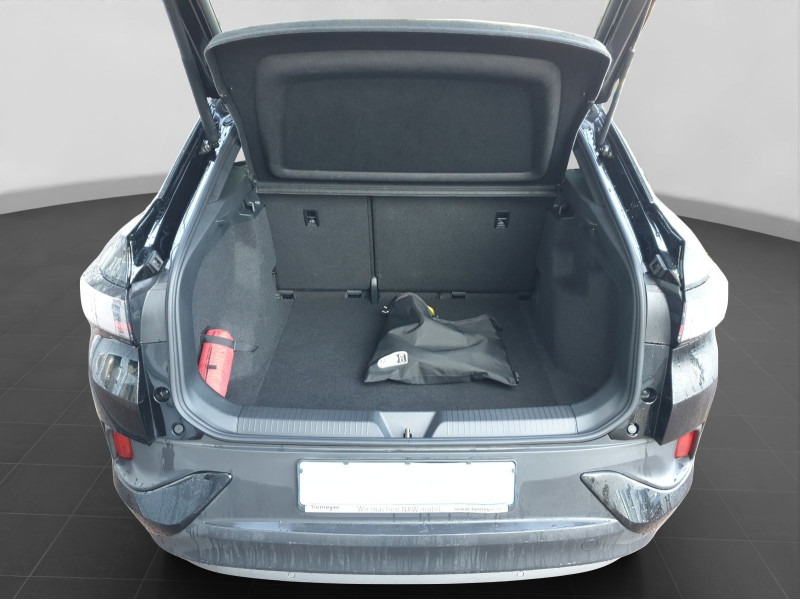**Garantie**; Anschlussgarantie 3 Jahre max. 100.000 km; **Batterie**; Hochvolt-Batterie 55 kWh (brutto) / 52 kWh (netto); 11 kW Wechselstrom-Ladeleistung (AC); **Getriebe / Antrieb**; Heckantrieb; **Pakete**; Design Paket; Infotainment Paket; Komfort Paket; **Airbags**; Center-Airbag; Fahrer-/Beifahrerairbag; Kopfairbag vorn und hinten; Seitenairbag; **Sicherheit**; IQ. Light - LED-Matrix-Scheinwerfer; Ausparkassistent - Rear Traffic Alert; Car2X; e-Sound; Schlechtwetterlicht; Spurhalteassistent Lane Assist; Spurwechselassistent Side Assist; Abbiegebremsfunktion; Ablenkungserkennung; Ausstiegswarnung; Ausweichunterstützung; Begrüssungslicht; Beifahrerairbag Deaktivierung; Dynamische Fernlichtregulierung Dynamic Light Assist; dynamisches Blinklicht; Einparkhilfe vorn und hinten; Fahrlichtautomatik; Geschwindigkeitsbegrenzer mit vorausschauender Regelung; i-Size Kindersitzbefestigung vorn und hinten; ISOFIX Kindersitzbefestigung vorn und hinten; Müdigkeitserkennung; Notruf Service; Regensensor; Reifendruckkontrolle; Umfeldbeobachtungssystem Front Assist; Verkehrszeichenerkennung; Wegfahrsperre; Vorbereitung Alcohol Interlock; **Audio & Kommunikation**; Discover Pro mit TFT-Farbtouchscreen; Navigationssystem; Ready 2 Discover Max; Rear Seat Remote; Sprachsteuerung; Telefonschnittstelle mit induktiver Ladefunktion; 2 USB-C-Ladebuchsen an der Mittelkonsole hinten; 2 USB-C-Schnittstellen vorn; 7 Lautsprecher; Android Auto; App-Connect Wireless; Apple CarPlay; Digitaler Radioempfang DAB+; VW Connect Plus Vorbereitung; **Komfort**; Fahrersitz höhenverstellbar; Fahrprofilauswahl; Sitzheizung; Standheizung/-lüftung programmierbar; Air Care Climatronic 2-Zonen; Standklimatisierung; Armlehne für Beifahrersitz; Armlehne für Fahrersitz; Automatisch abblendender Innenspiegel; Automatische Distanzregelung ACC; Elektrische Luftzusatzheizung; Fensterheber elektrisch; Keyless Start; Lenkrad verstellbar; Servotronic; Verglasung hinten abgedunkelt; **Interieur**; Sitzbezüge in Stoff; Digitales Cockpit; Lenkradheizung; Make-up Spiegel beleuchtet; Multifunktionslenkrad; Rücksitzlehne geteilt/klappbar; **Exterieur**; 3D LED Rückleuchten; Außenspiegel elektrisch verstell-/anklappbar beheizt mit Beifahrerspiegelabsenkung; Außenspiegel mit Umfeldbeleuchtung; beheizbare Frontscheibe; Ganzjahresreifen; Leichtmetallfelgen 19 Zoll Hamar; Leiste zwischen den Scheinwerfern beleuchtet; Umfeldbeleuchtung mit Logoprojektion; **Sonstiges**; CCS Ladedose; Ladekabel für Haushalts-Steckdose; Wärmepumpe zur Reichweitenoptimierung; 12 Volt Steckdose im Koffer-/Laderaum; Metallic-Lackierung; * Multifunktionslenkrad mit Touch-Bedienung