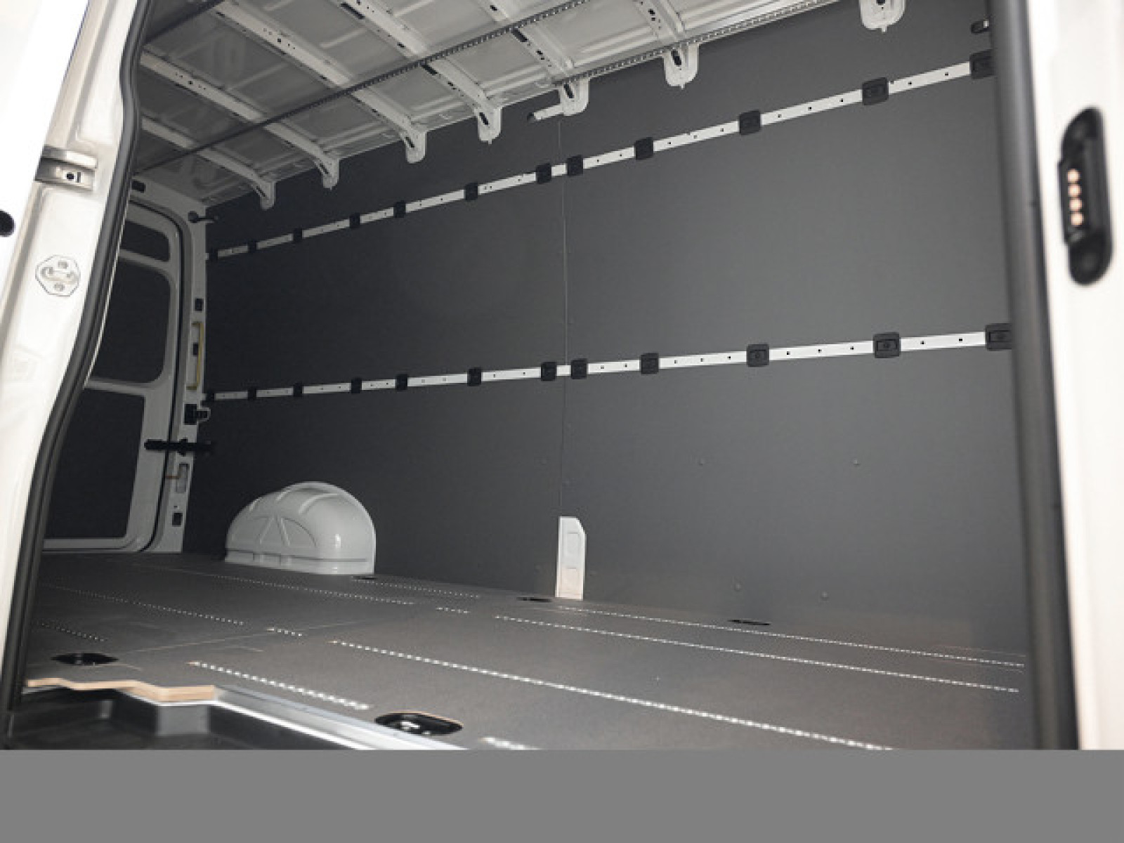 - Seitenverkleidung im Laderaum aus Kunststoffhohlkammerplatten, bis zum Dachrahmen
