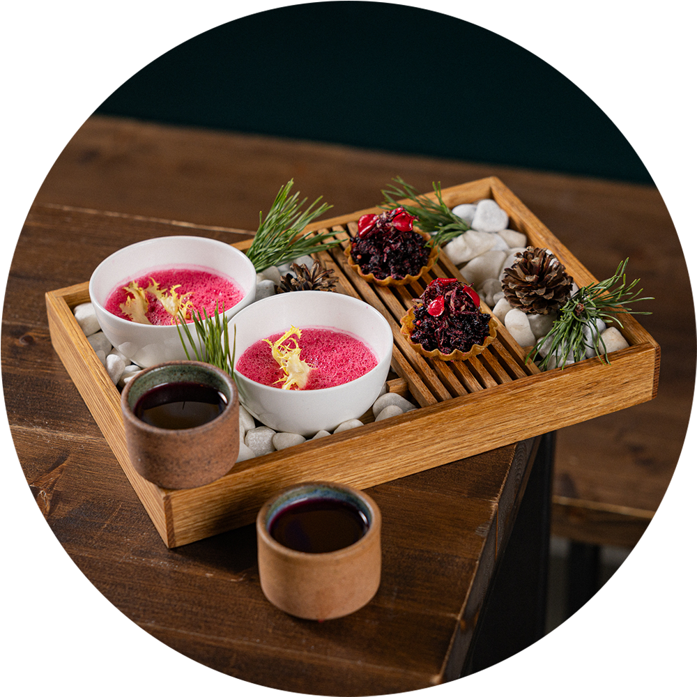 Through creative new creations, premium ingredients, and uncompromisingly delicious dishes, we demonstrate what modern vegan cuisine can look and taste like. The team in the Bonvivant kitchen draws inspiration from Japanese, Nordic, and French culinary traditions, particularly in matters of seasonality and flavor. From blossoms and conifer fruits to a wide variety of vegetables, we experiment until every nuance is refined and every tasting plate is returned completely empty.